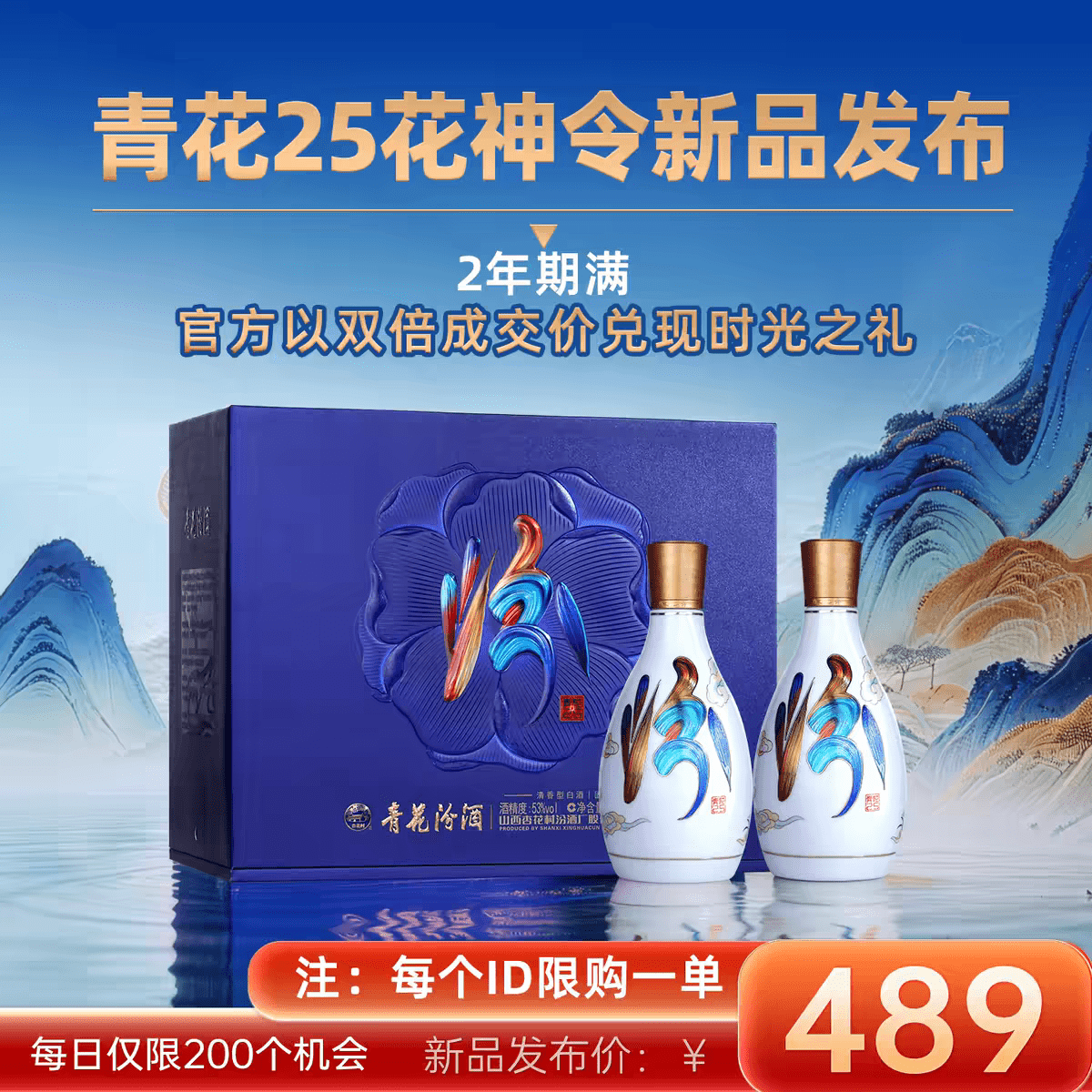据官方信息,该款新品定价为489元,同时汾酒为其推出了创新“理财促销活动”。活动期间(1月1日至1月8日)内成功支付订单的消费者,将在两年后获得双倍价格回购承诺。