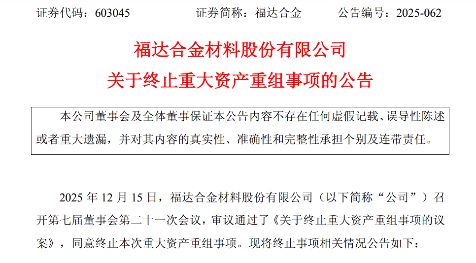 在并购逻辑上,潜在的长期专利风险、主营产品受限可能性以及由此带来的盈利预测波动,显然难以被忽视。综合权衡之下,福达合金选择在交易尚未深入推进前止损,或成为更为审慎的现实选择。