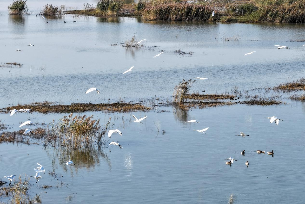 白琵鹭被视为湿地生态环境的“晴雨表”,其对栖息地的选择极为挑剔。它们的成群现身,正是对黄陂湖生态治理成果的无声认可。近年来,庐江县通过退渔还湖、底泥清淤等系列修复工程,持续改善湿地水质,恢复生态功能,为过往候鸟提供了充裕的食物与安宁的栖居之所。如今,除了白琵鹭,灰雁、鸳鸯等多种候鸟也陆续前来越冬,黄陂湖逐渐成为候鸟迁徙途中一个重要的中转栖息地。