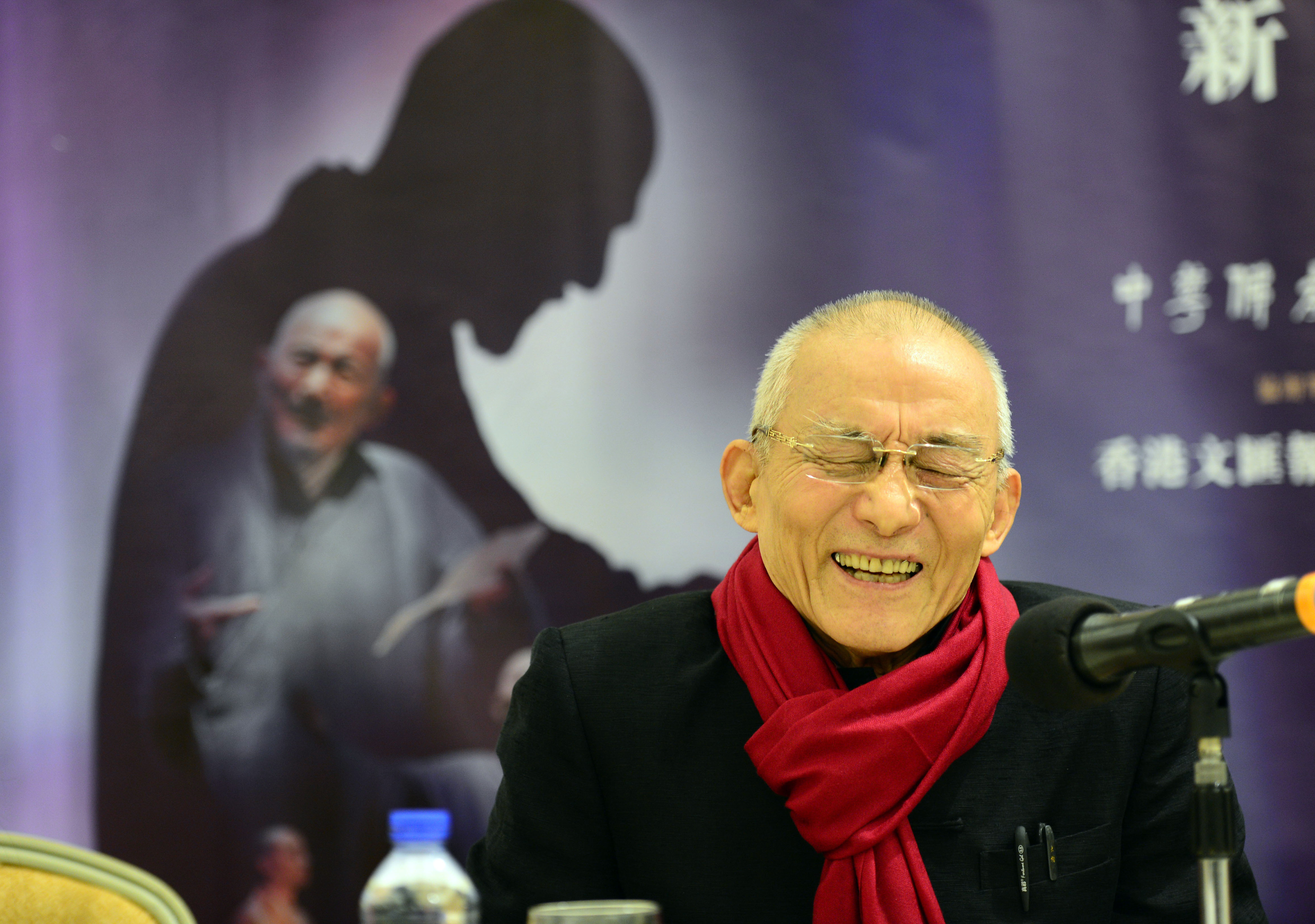 2016年1月11日,著名表演艺术家游本昌先生在《弘一大师·最后的胜利》新闻发布会上讲话。