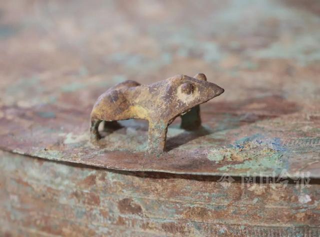 鼓边铸着的青蛙。通讯员汤晓逵 摄