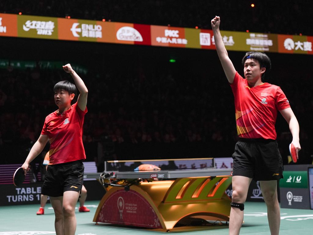 决赛首场混双,王楚钦/孙颖莎继续为中国队担纲。面对日本队年轻组合松岛辉空/大藤沙月,中国组合迅速进入状态,凭借快速衔接、默契跑位以及王楚钦强力旋转的优势,连续压制对手,以直落三局赢下“开门红”。