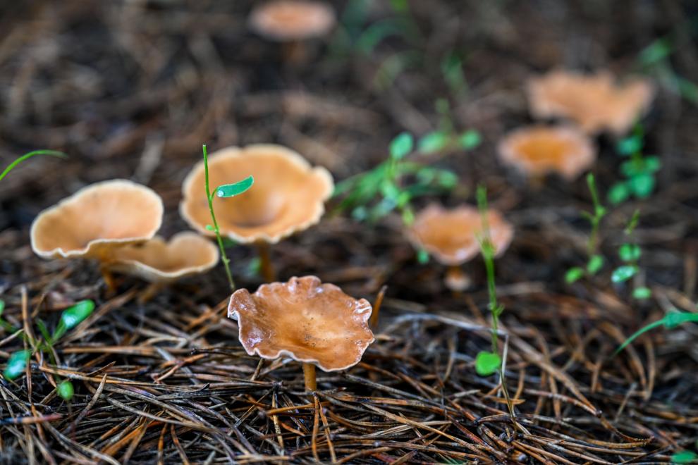 这是在内蒙古通辽市科尔沁左翼后旗科尔沁沙地“双百万亩”综合治理工程努古斯台项目区内,樟子松林下生长的蘑菇(2024年8月3日摄)。