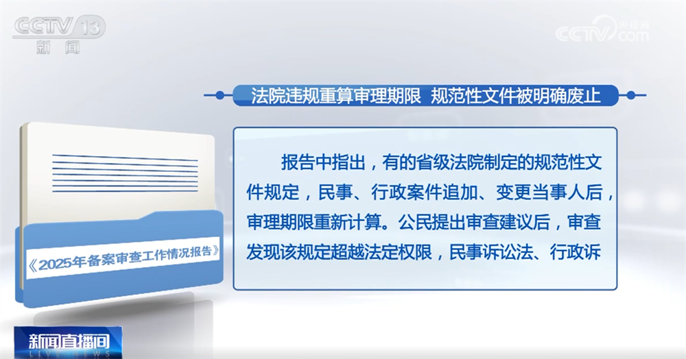 对于部分法院规范性文件,涉及民事、行政案件追加、变更当事人后重新计算审理期限的规定,审查发现超越法定权限并可能损害当事人合法权益,已与有关方面督促制定机关明确废止。