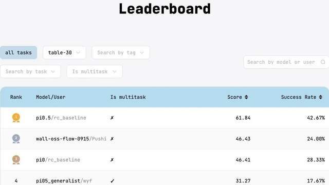 排名前三名,wall-oss是唯一一个国内开源具身基础模型。