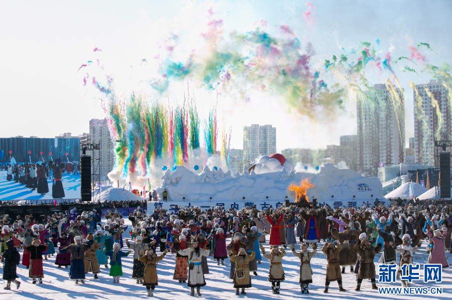 12月21日,演员在第二十一届内蒙古自治区冰雪那达慕开幕仪式上表演。