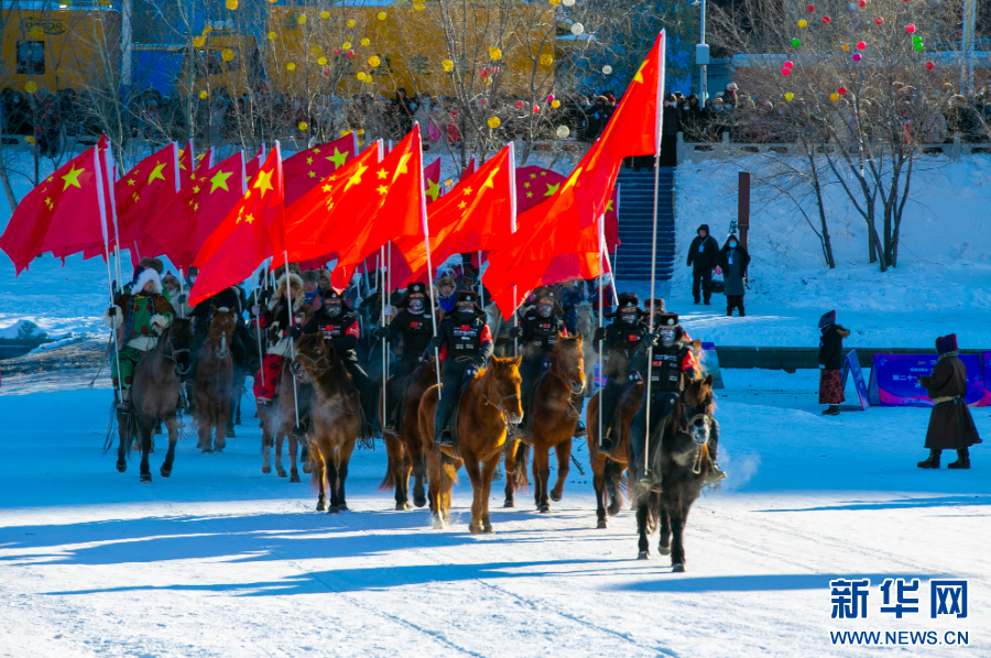 12月21日,海东青骑警队在第二十一届内蒙古自治区冰雪那达慕开幕仪式上入场